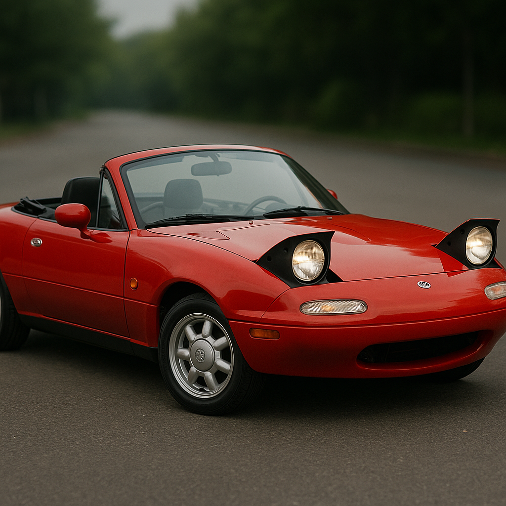 当時、北米では「Miata」の名で販売され、瞬く間に熱狂的ファンを獲得。英国では「MX-5」として受け入れられ、ライトウェイトスポーツ復活の象徴となった。